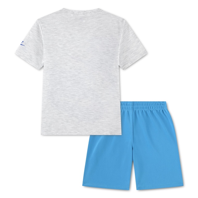 Ensure your toddler stays comfortable and stylish with the Nike Sportswear Toddler Kids' Split Futura Sportswear Set. This two-piece set includes a jersey knit t-shirt with a bold Nike Swoosh graphic and matching poly tricot shorts. The elastic waistband on the shorts provides a secure and comfortable fit, perfect for active little ones.