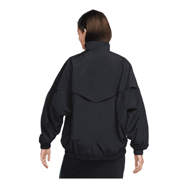 Stay covered without losing a stitch of style in this oversized, carefree jacket. Building on the classic Windrunner, its crinkle woven fabric is lined with mesh for added comfort and easy layering. An iconic chevron shape and Futura logo provide a heritage Nike look. This product is made with 100% recycled polyester and recycled nylon fibers.
