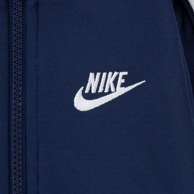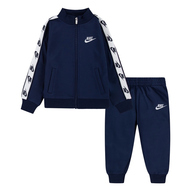 Unleash your young star's potential with the Nike Toddler Boys' Full Zip Track Set. Made with moisture-wicking Dri-FIT fabric, this set keeps kids dry while logo side taping adds a sporty touch. Featuring a zip closure, ribbed finishes, and essential pockets, it’s the perfect choice for active kids.