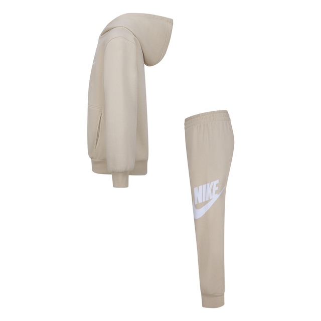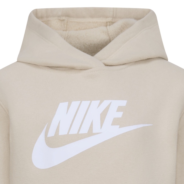 Soft and stretchy fleece sweatshirt with a standard hood, kangaroo pocket and ribbed waistband and cuffs. Paired with cozy fleece pants with elastic waistband and cuffs for everyday comfort. Finished with matching Nike Futura logos.