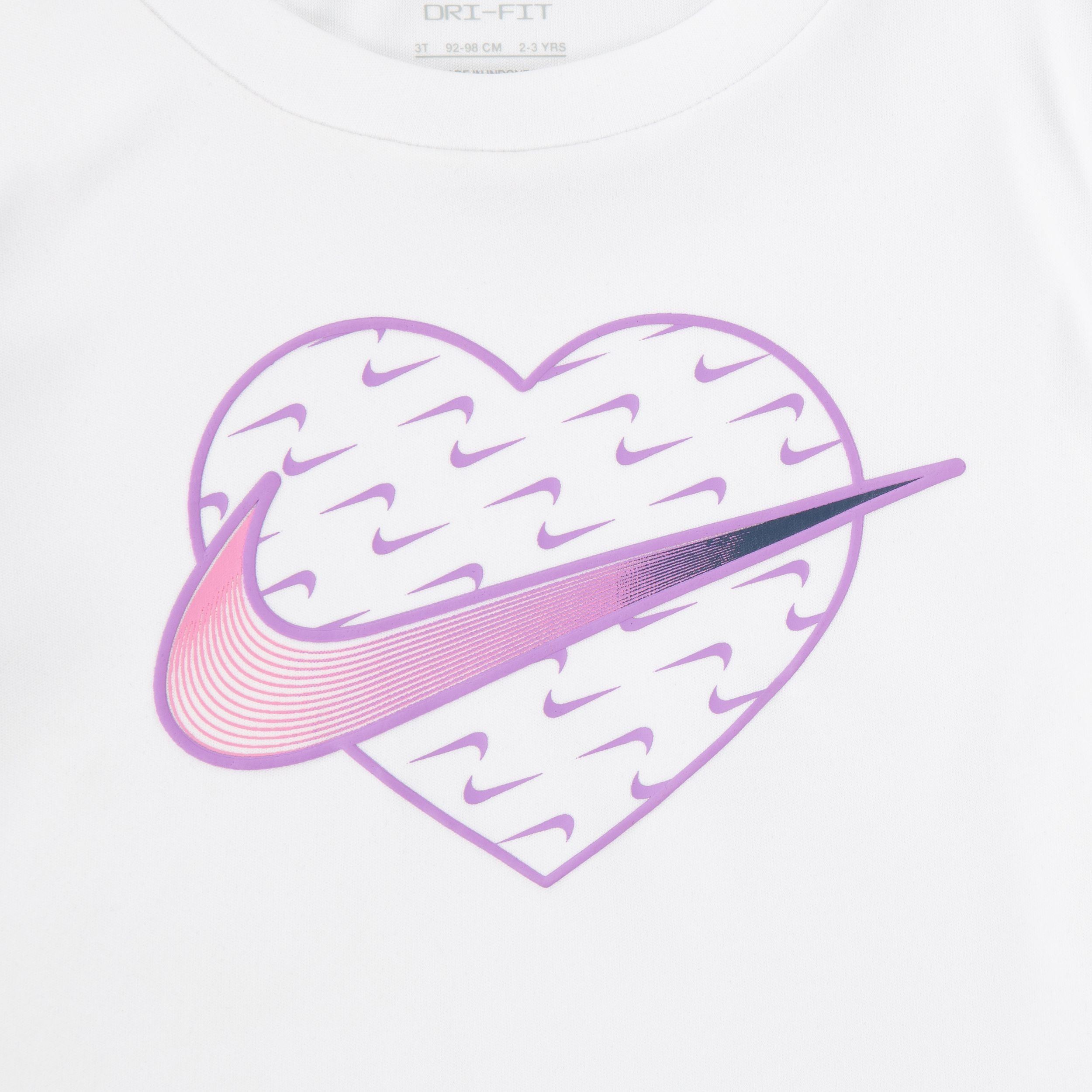 Nike heart graphic on the chest and iconic Swoosh logo lend branded athletic style.