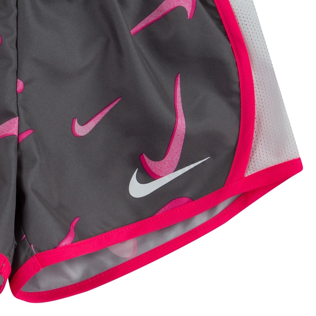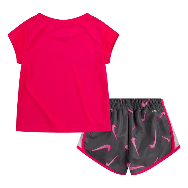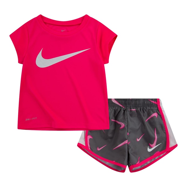 This Nike Toddler Kids' 3D Swoosh All Over Print Tempo Shorts Set is an easy way to dress the smallest athletes on the move. The tee is made of interlock knit fabric and features a Swoosh print and the matching shorts are made of woven microfiber fabric for breathability. This shorts set is enhanced with quick-drying, moisture-wicking Dri-FIT technology to help keep kiddies cool and dry at play.