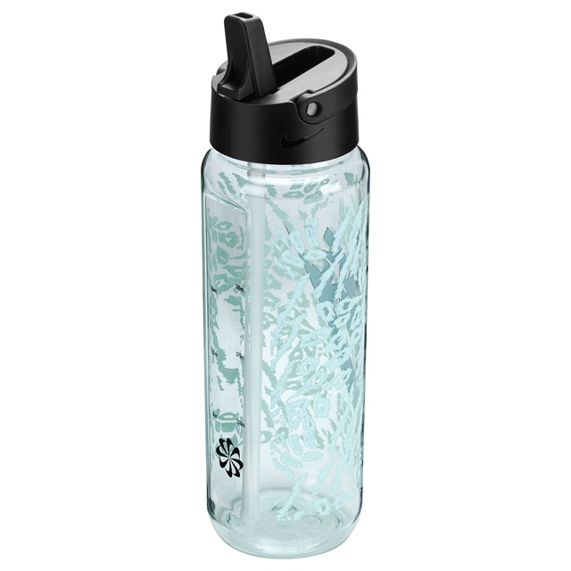 The Nike TR Renew Recharge 24 oz Bottle is crafted with 71.5% Tritan for durability and contains recycled materials for a sustainable touch. Its ergonomic shape and soft carry loop ensure comfortable handling and ease of use, while the included straw and leak-resistant twist-off lid enhance this Nike bottle's functionality.