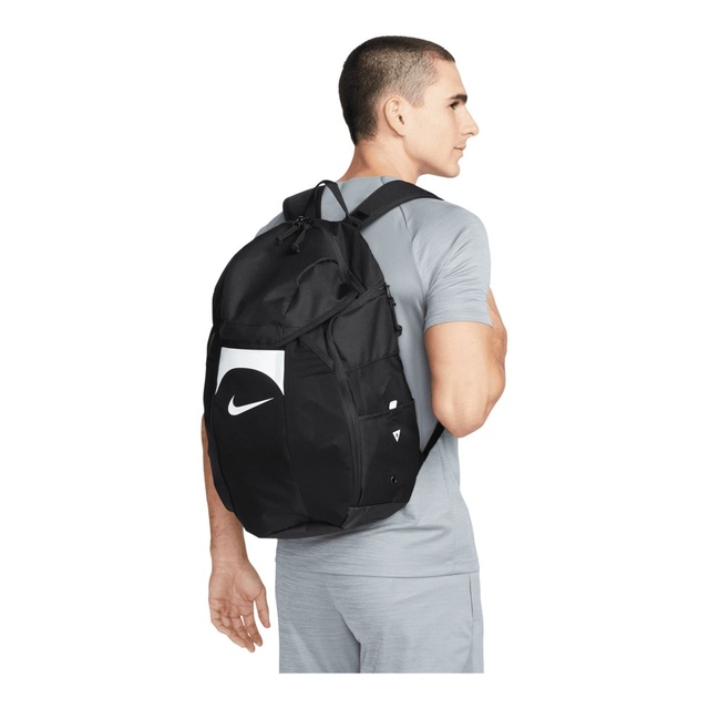 Keep your gear safe from the rain in the Nike Unisex Academy Storm-FIT Backpack. The water-resistant, polyester construction features Nike Storm-FIT technology, a protective tech pocket and a hidden rain-fly pocket. This Nike backpack prioritizes comfort with mesh ventilation and padded shoulder straps.