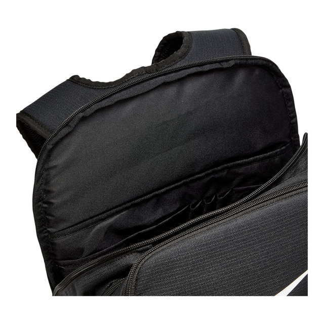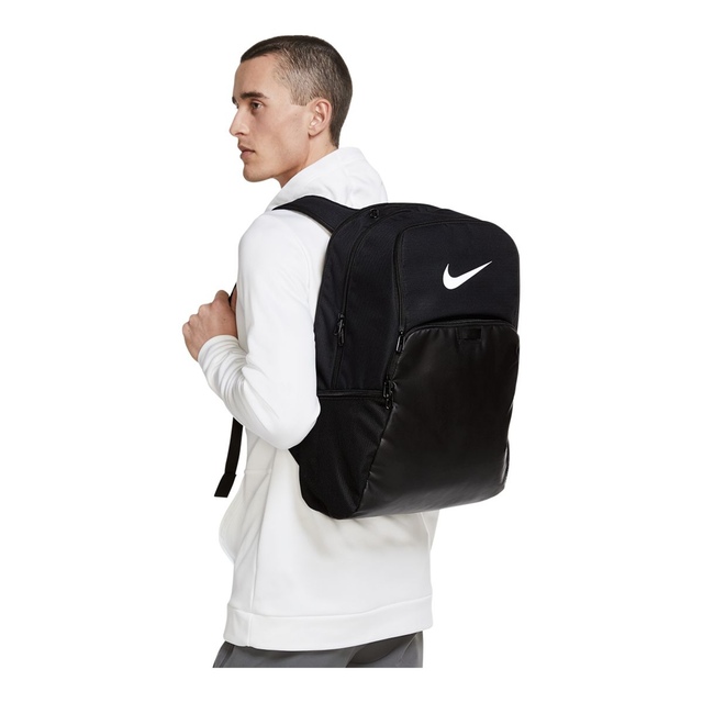 The spacious Nike Unisex Brasilia XL Backpack is designed with densely woven polyester for durable daily wear. This backpack features a zippered main compartment that opens wide and an internal laptop sleeve to keep all your essentials safe. With a ventilated front pocket, padded shoulder straps, side mesh pockets and a convenient haul handle, this comfortable Nike backpack is ideal for school, work or the gym.