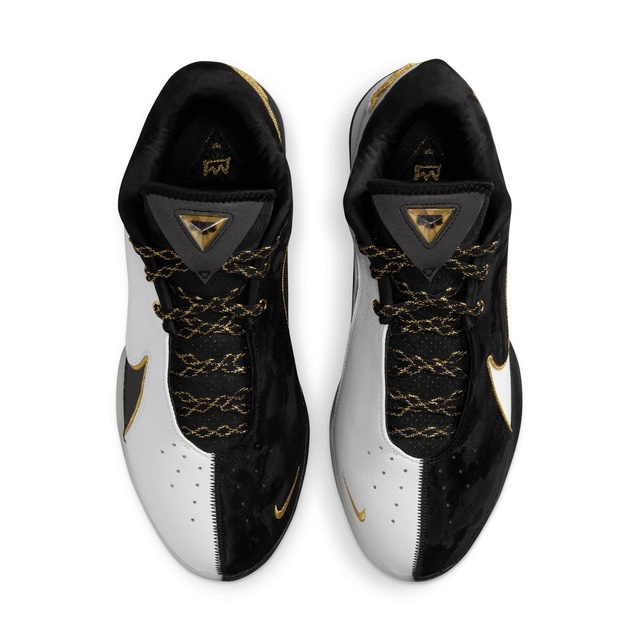 The asymmetric design reflects LeBron's push for equality, with gold accents symbolizing his status as King