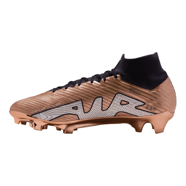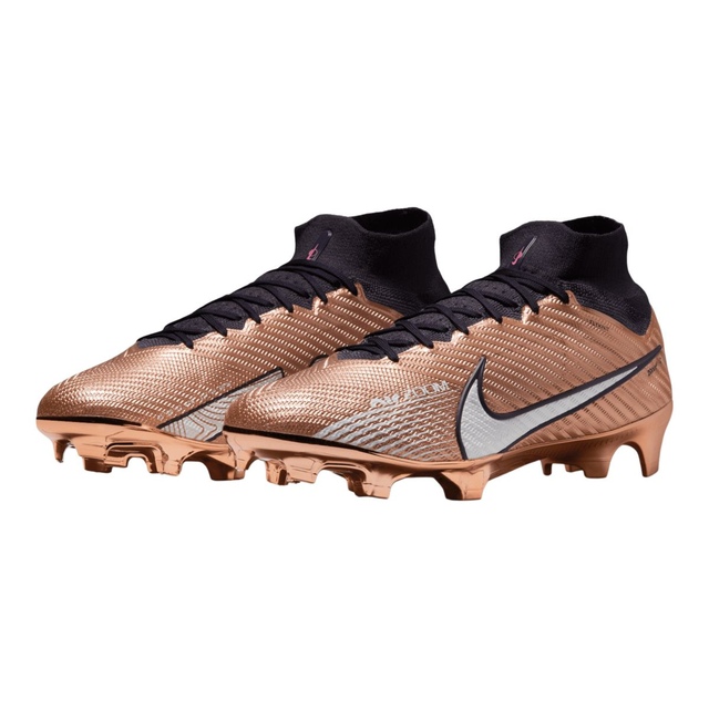 The Nike Unisex Mercurial Zoom Superfly 9 Elite Firm Ground Mesh Soccer Cleats feature a soccer-specific Zoom Air unit and grippy texture up top for explosive speed. The tri-star studs on these firm ground cleats provide multi-directional traction with every step, while the heel and toe-off centre studs offer stability when braking and during starts. These soccer cleats are ideal for use on slightly wet, short-grass fields.