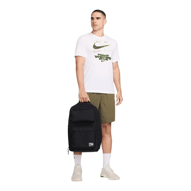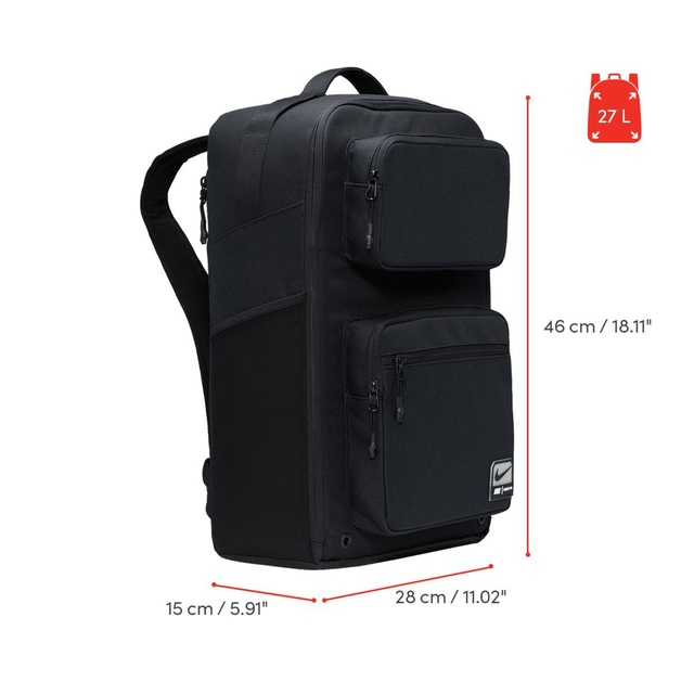 The Nike Utility Speed 2.0 Backpack is a 27-litre gym bag designed for convenience and organization. It features a butterfly-opening main compartment that provides ample space for your essentials. Dedicated pockets can securely hold a laptop up to 16 inches and smaller items. This Nike backpack also includes side pockets for water bottles, ensuring your essentials are always within reach.
