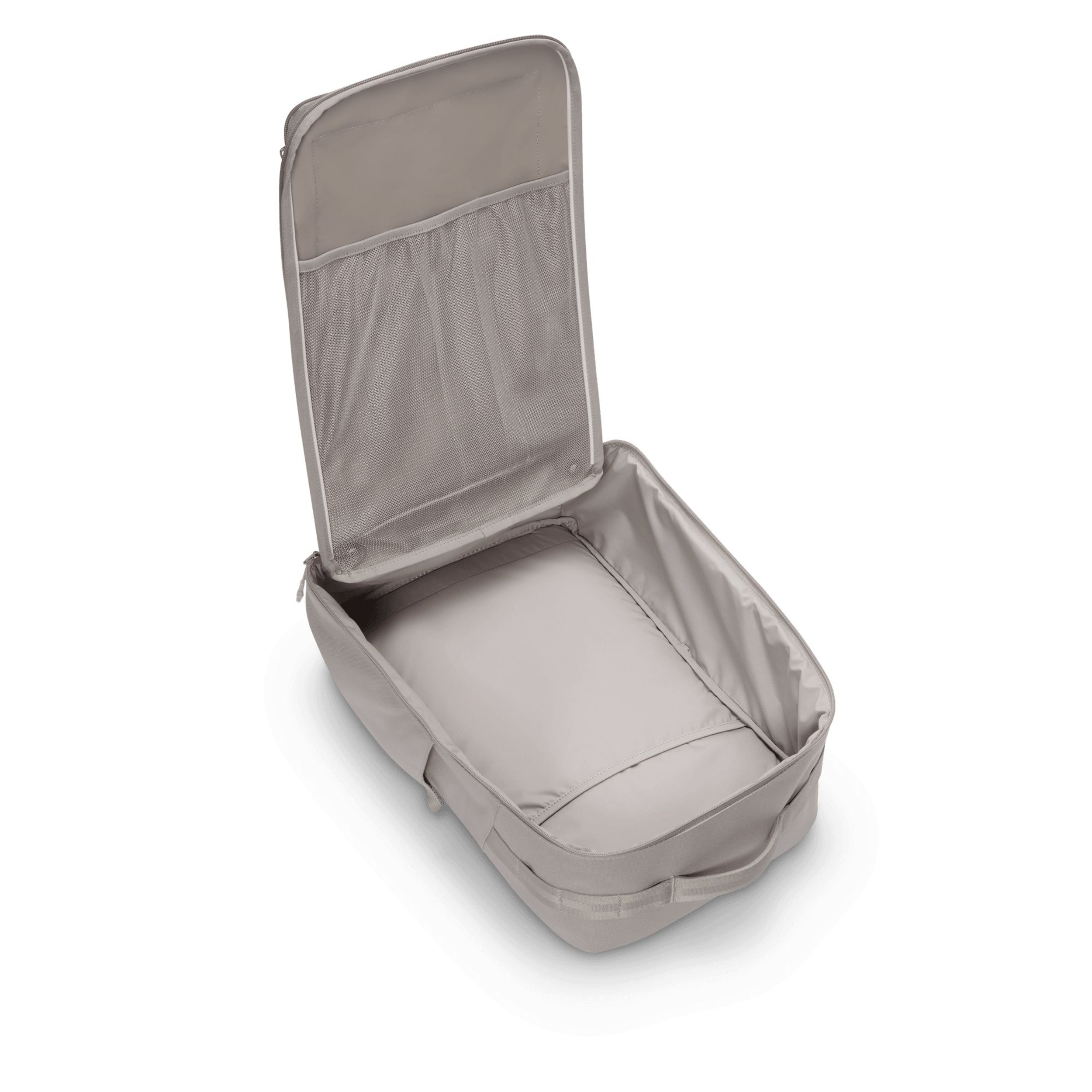 Butterfly opening main compartment offers spacious storage