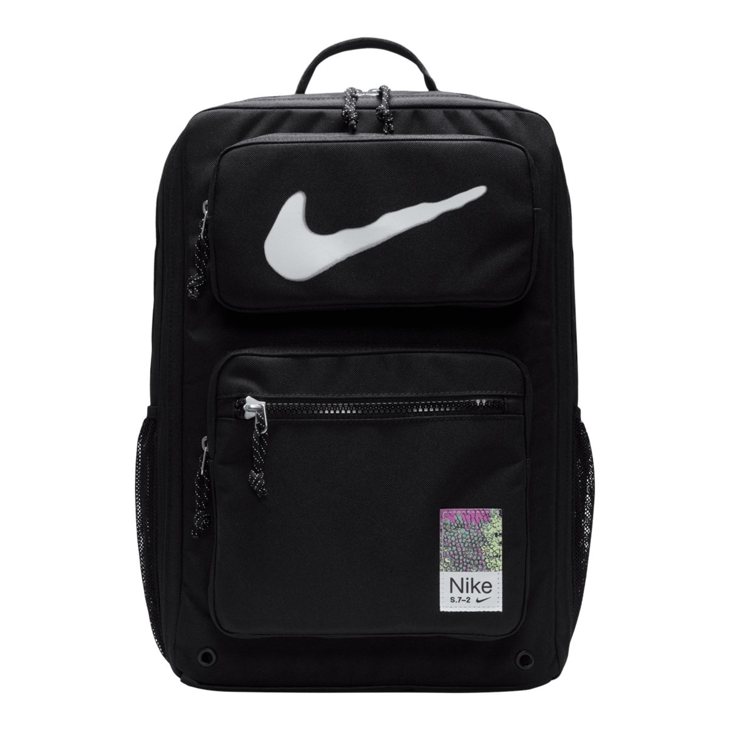 The Nike Utility Speed Graphic Backpack is a 27L backpack for active lifestyles. The main compartment and zippered front pockets offer organized storage for your gear. Dual-zip access and side water bottle pockets allow quick access to essentials. Suitable for the gym or office, this utility backpack combines performance features with a sleek style, enabling you to comfortably tackle your day.