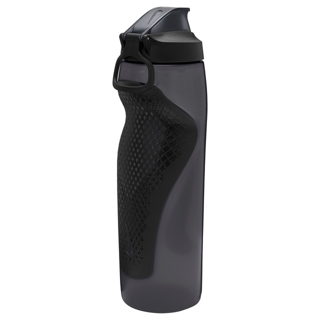 Stay hydrated and refreshed wherever you are, whatever you are doing with the Nike Refuel Bottle Locking Lid 32 OZ. This bottle is constructed of squeezable material and features a fast-flow, leak-proof valve for hydration on the go. Features a flip-top lid that locks into place for easy closure and has a foldable handle for easy storing and carrying. A strategically placed overlay adds an extra layer of comfort and grip, and the bottle fits in the hand comfortably. Decorated with Nike graphic. Contents: 63.23% Low Density Polyethylene, 18.71% Polypropylene, 9.94% Thermoplastic Elastomer, 6.05% Acrylonitrile Butadiene Styrene, 1.21% Silicone, 0.86% Stainless Steel.