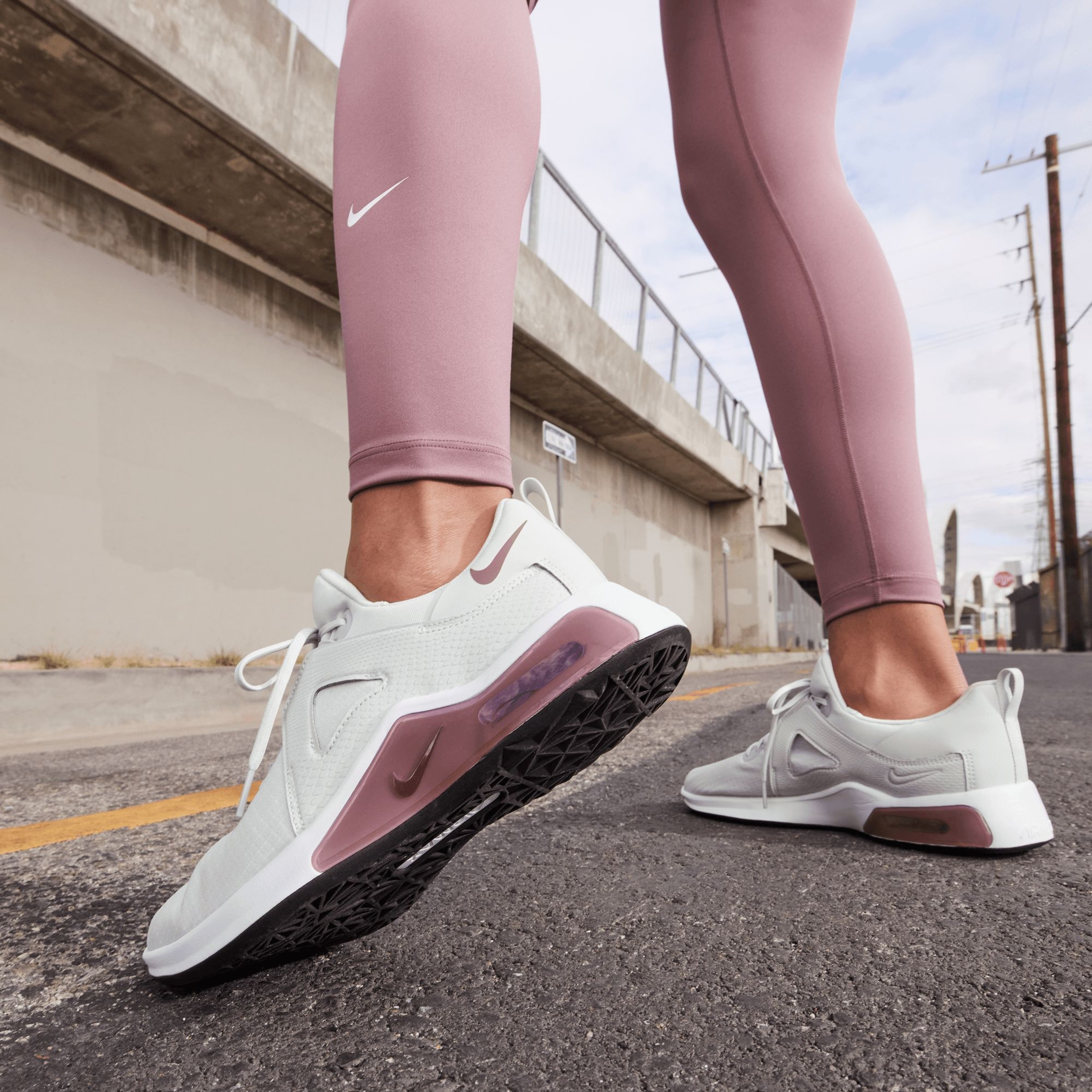 The Nike Air Max Bella TR 5 combines the bounce and beauty of Max Air cushioning with a flat sole that lends a stabilizing advantage while you tone and sculpt with weight. This updated design increases the containment and support around the sides and top of your foot to help keep you steady on your feet and secure during demanding strength workouts.
