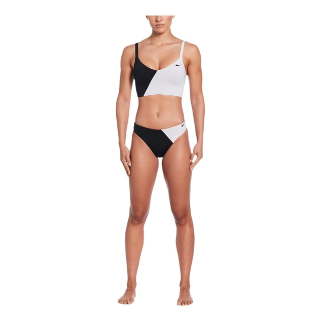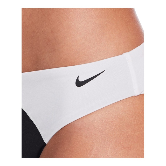 The Nike Women's Colourblock Hipster Bikini Bottom elevates swimwear basics with its stylish colourblocked design and delicate design details. Crafted with at least 75% recycled materials, this sustainable bikini bottom offers standard coverage and a low rise for a classic, comfortable fit. The chlorine resistant fabric and lined construction provide secure coverage and durability for water activities.