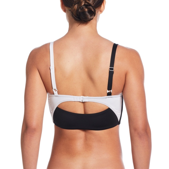 The Nike Women's Colourblock V-Neck Midkini Swimwear combines comfort and style for your aquatic adventures. This midkini top features a medium support bust to keep you feeling confident and secure during water activities. The adjustable back and shoulder straps allow for a customized fit, while the lined design provides modesty. Removable bra cups offer additional coverage and comfort. Crafted with chlorine resistant materials, this swimwear will withstand repeated exposure to pool water. Nike's commitment to sustainability shines through with at least 75% recycled materials used in construction. A heat transfer Swoosh logo adds the iconic Nike branding.