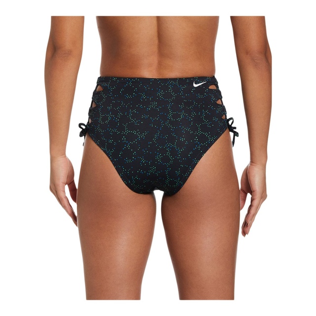 Hit the beach or pool in style without compromising performance. This Nike women’s bikini bottom features an eye-catching print, flattering cheeky bottom coverage and a high waist. The high leg height sits above your hips to allow a wide range of movement. Adjustable drawcords at the hip let you customize your fit and add another stylish design element. These swimsuit bottoms are crafted from soft jersey fabric made with 75% recycled materials to help reduce waste sent to landfills. This is women’s swimwear that’s eco-friendly and looks great.