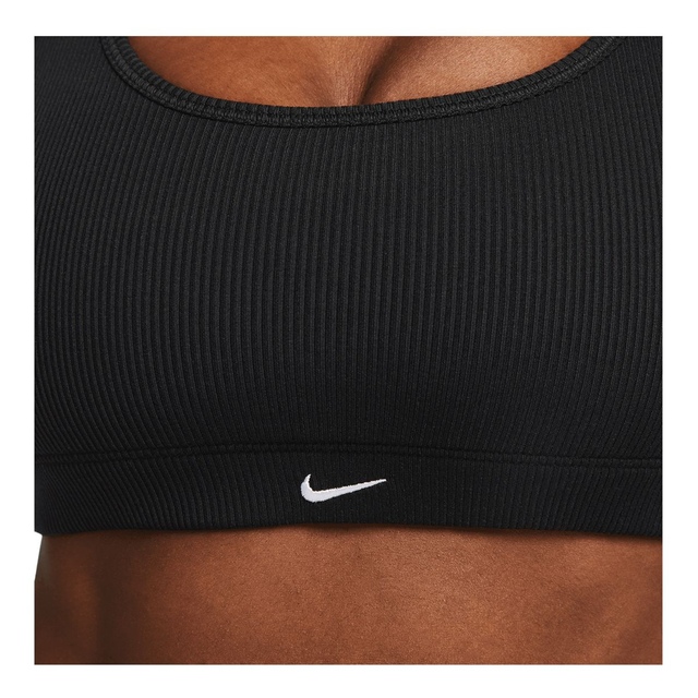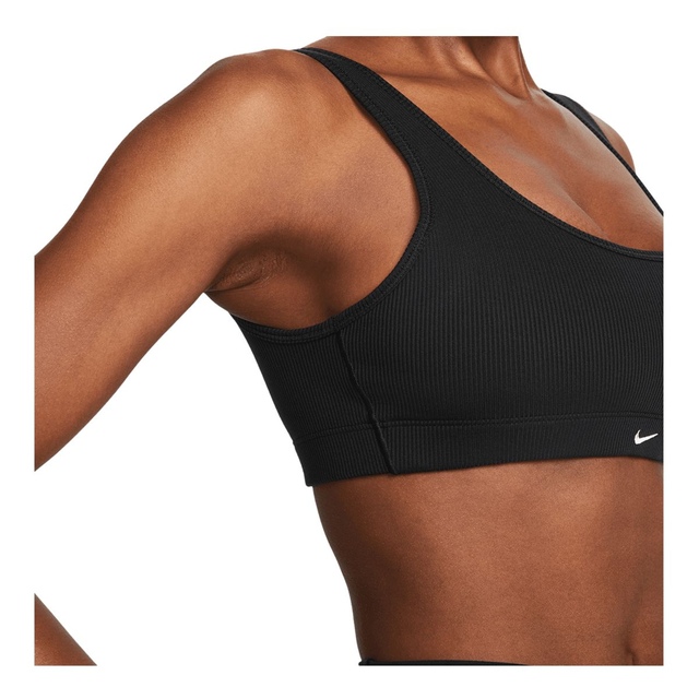 The Nike Women's Dri-FIT Alate All U Low Ribbed Sports Bra delivers essential coverage with a low-profile ribbed design. Its soft ribbed fabric offers stretch and support while the low-cut neckline provides full range of motion. Nike's sweat-wicking Dri-FIT fabric helps keep you dry and comfortable as you move. Removable contoured cups provide light support. This sports bra's compressive fit stays in place during low-impact activities like yoga, barre workouts, and weight training. Smooth, flat seams minimize chafing and irritation for total comfort.