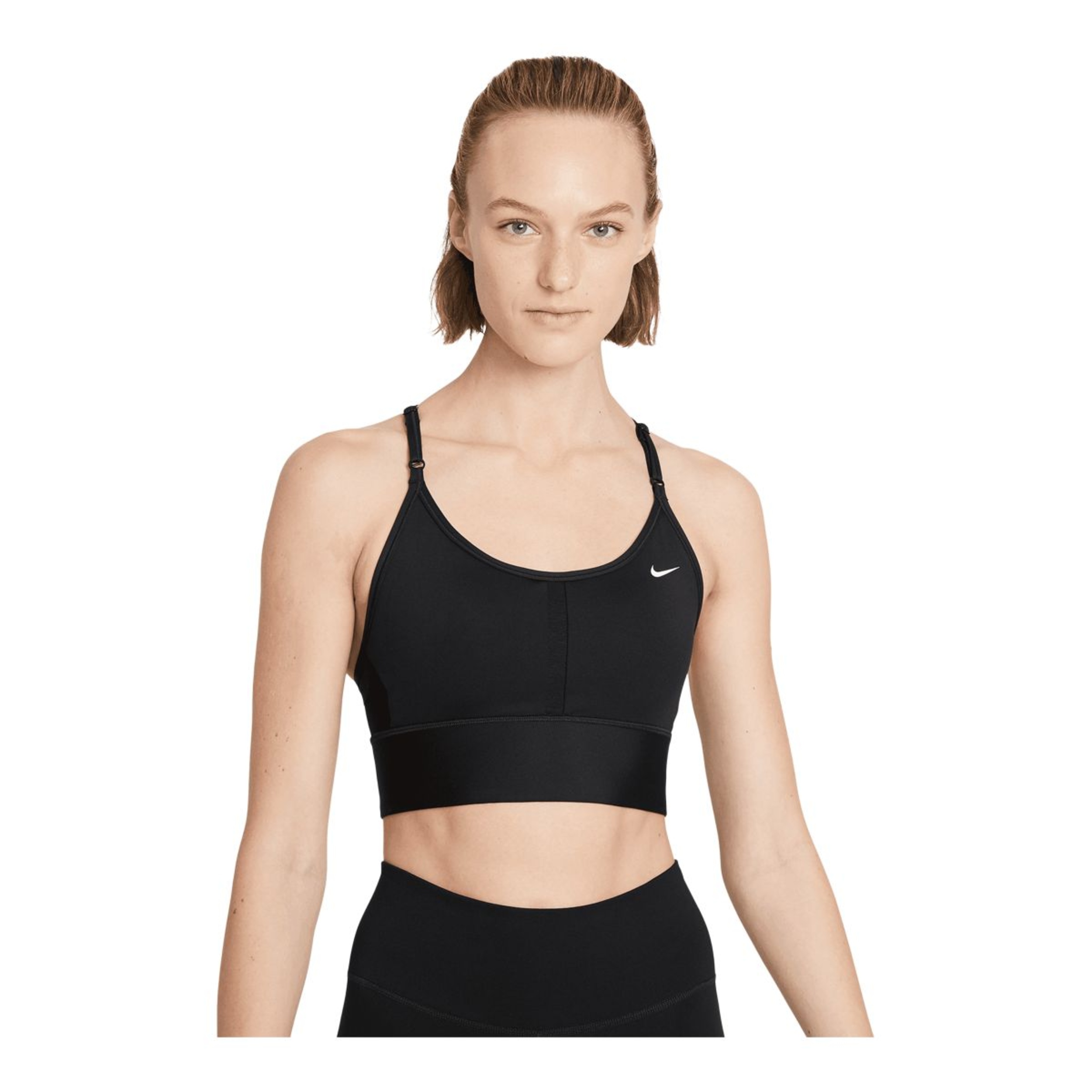 Your workouts are customized to your needs—shouldn’t your bra be? The lightweight Nike Dri-FIT Indy Sports Bra makes it simple to get your perfect fit. Removable padding lets you switch up your coverage, while adjustable straps help give you a secure fit. With soft, body-hugging material and a wide underbust band that extends just below your ribcage, you’ll feel confidently covered as you move. This product is made with at least 50% recycled polyester fibers.