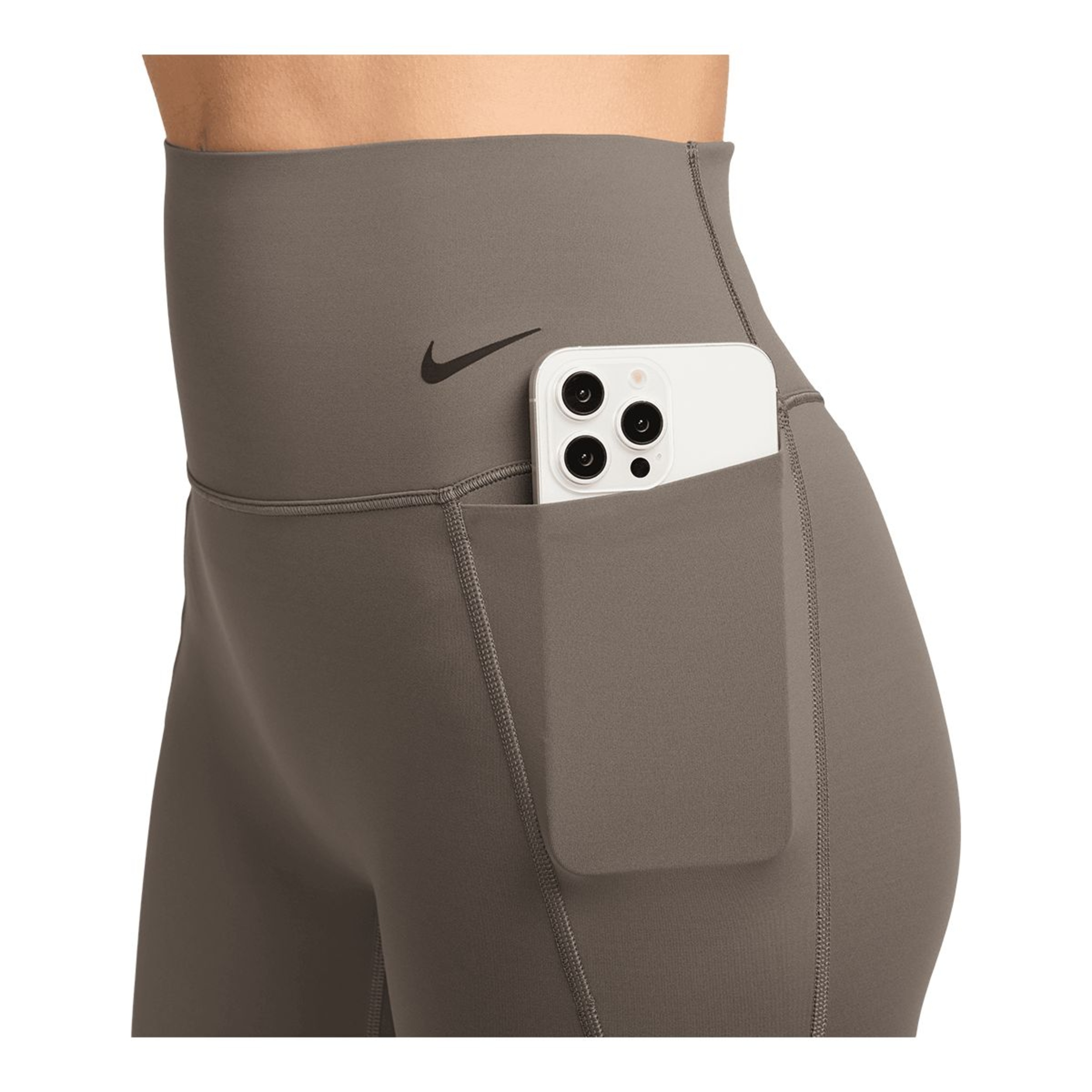 The Nike Women's Dri-FIT Universa High Rise 7/8 Tights feature sweat-concealing technology to keep you feeling confident during intense workouts. Crafted with Nike's Stealth Evaporation fabric, these midweight leggings incorporate water-repellent and water-absorbent yarns that help hide moisture within the fibers and promote quicker drying. The seamless front design minimizes the appearance of camel toe, while the squat-proof stretch offers a flattering, sculpted silhouette.