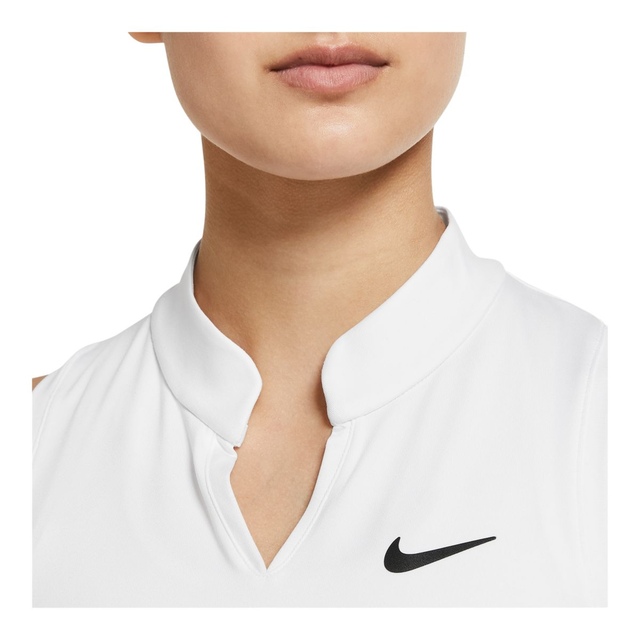 Add a touch of sophistication to your game look in this tennis dress, pairing a V-neck with a mock-neck collar. This lightweight design is incredibly soft and made from extra stretchy fabric so you can move in total comfort on and off the court. Ball shorts are not included with this dress, so you can style it however you'd like.