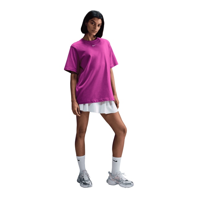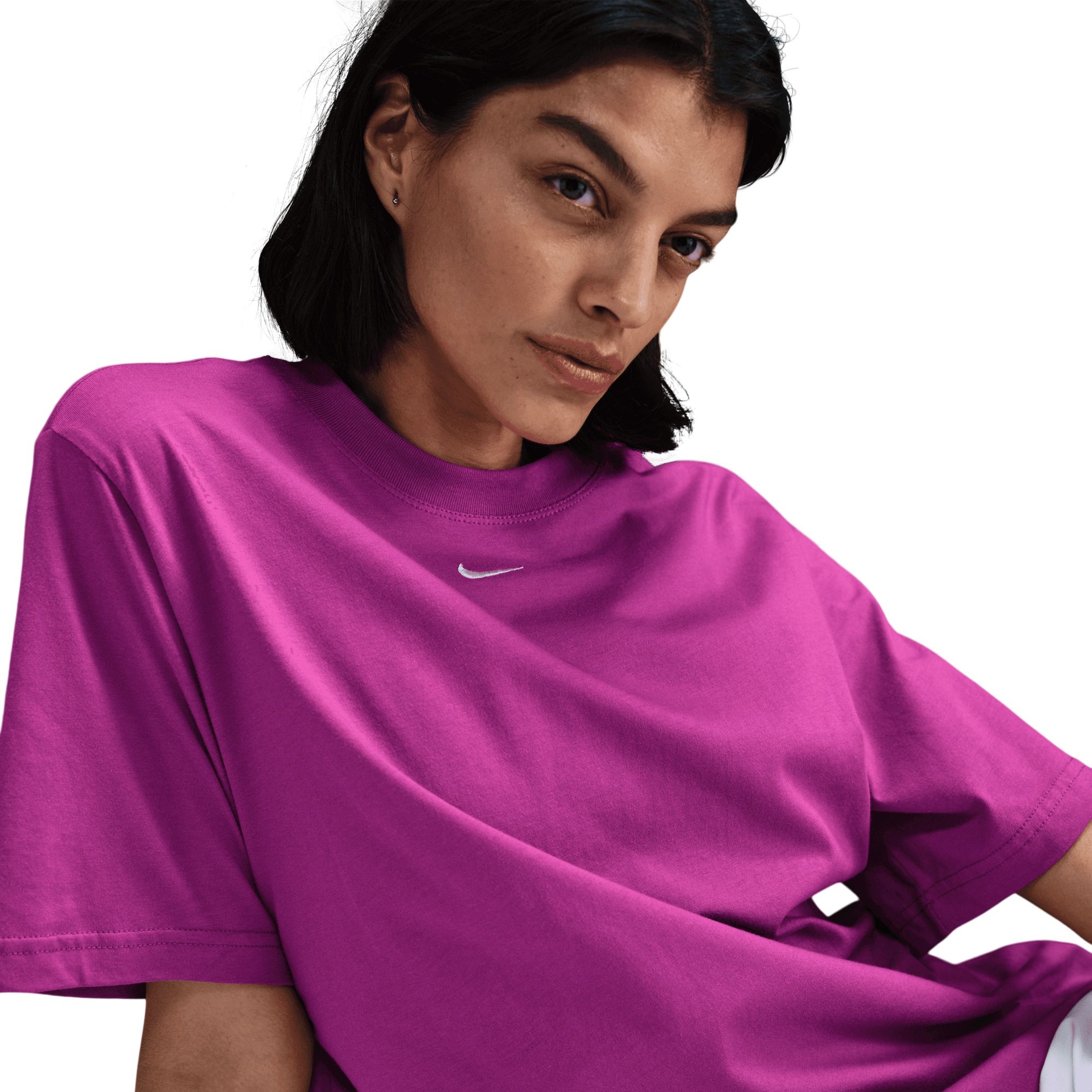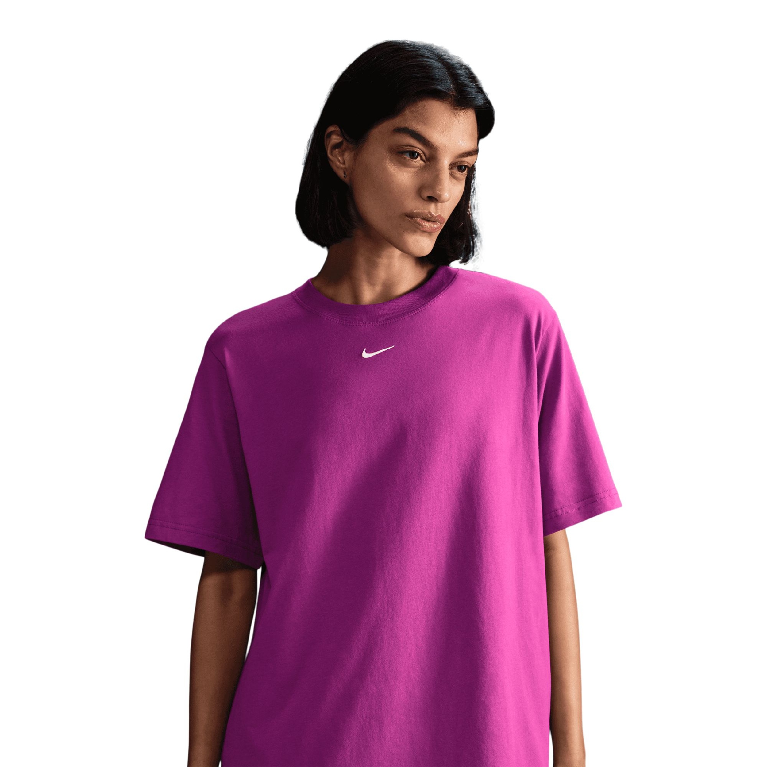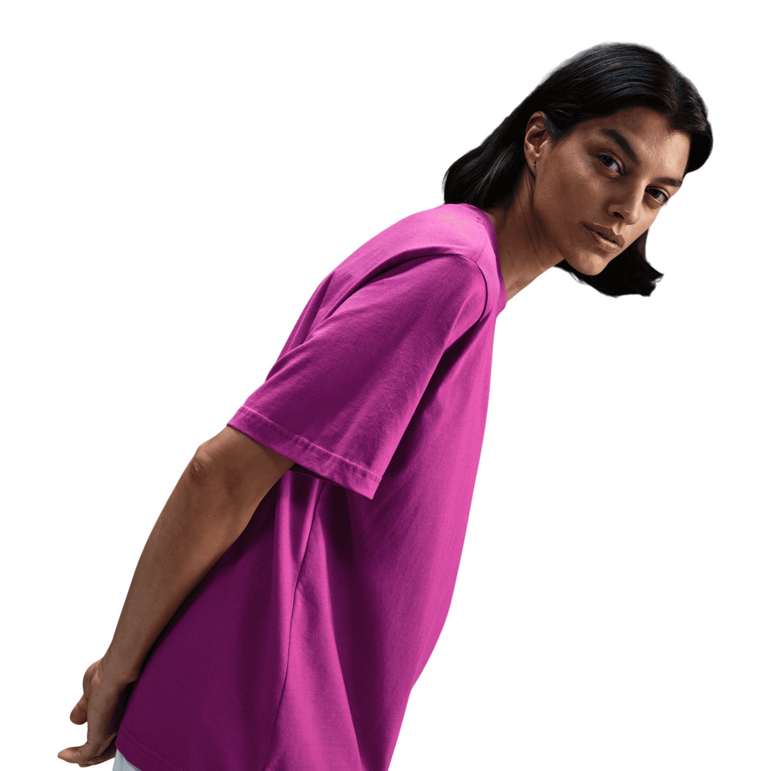 The Nike Women's Essentials LBR T Shirt is designed for ultimate comfort, featuring a relaxed fit with slightly dropped shoulder seams. Made from soft cotton, it offers a loose silhouette perfect for lounging or running errands. Built for both comfort and style, this casual tee is a wardrobe staple.