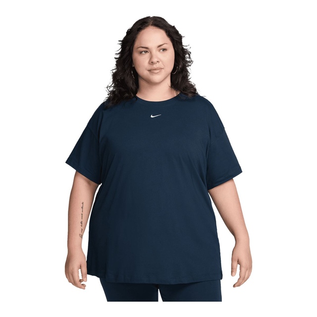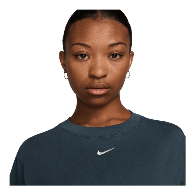 The Nike Women's Essentials LBR T Shirt is designed for ultimate comfort, featuring a relaxed fit with slightly dropped shoulder seams. Made from soft cotton, it offers a loose silhouette perfect for lounging or running errands. Built for both comfort and style, this casual tee is a wardrobe staple.
