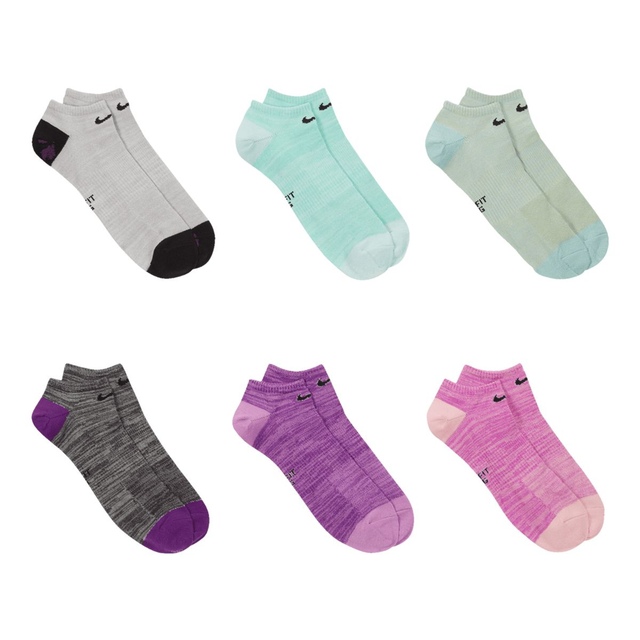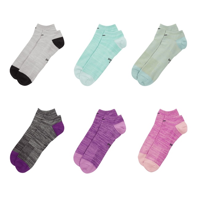 The Nike Women's Everyday Lightweight Athletic No-Show Socks deliver superior sweat management and breathability for dry, comfortable feet during training sessions or active days. Nike's signature Dri-FIT technology wicks away moisture while the breathable knit construction maximizes airflow, ensuring feet stay cool and ventilated. The lightweight, low-profile no-show design provides an invisible fit, making them ideal women's athletic socks for the gym, workouts or an active lifestyle.