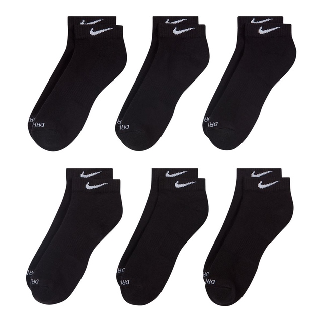 Experience the ultimate in comfort and performance with the Nike Women's Everyday Plus Cushioned Low Socks - 6 Pack. Featuring Nike's innovative Dri-FIT technology to wick away moisture, these socks keep feet dry and comfortable. Strategically placed cushioning under the forefoot and heel areas absorbs impact, while the snug arch band offers supportive stability. Additionally, the breathable knit pattern on top of these Nike socks enhances ventilation.