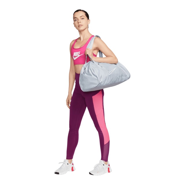 Wherever your workout takes you, the Nike Women's Gym Club All Over Print Duffle Bag has your back. This roomy 24L duffel keeps all your gear organized with a zippered internal pocket and a front zippered compartment for small essentials. The adjustable shoulder strap and dual handles let you carry it comfortably however you prefer. Crafted from durable, long-lasting woven fabric, this stylish bag is ready for your next sweat session, dance class, or weekend getaway. With a sporty all-over print, it's a gym bag that's as fashionable as it is functional. Just grab it and go - your workout essentials will be right at your fingertips.