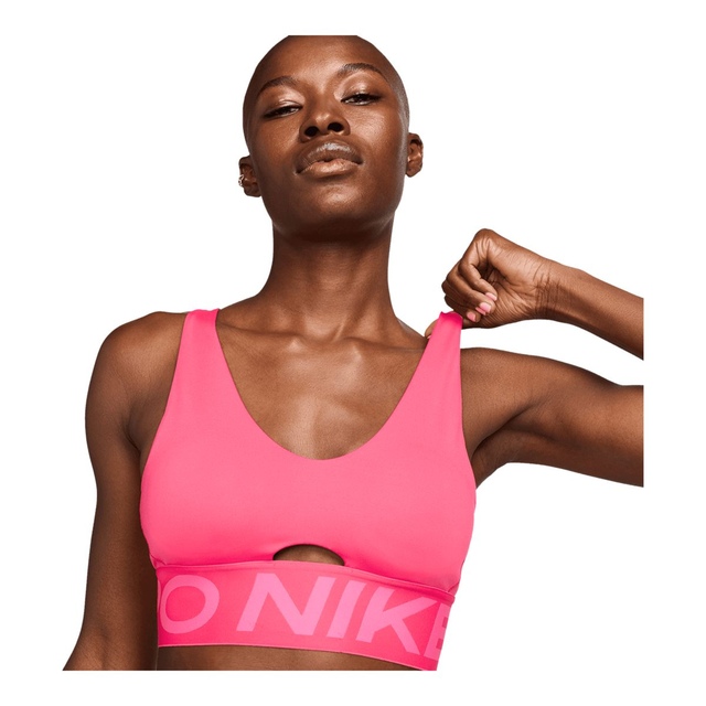 The Nike Women's Indy Plunge Medium Sports Bra features a bold plunging design with minimized coverage for a snug, supportive fit. Convertible straps and removable pads allow for customizable styling, while the snug hold ensures stability during your activities.