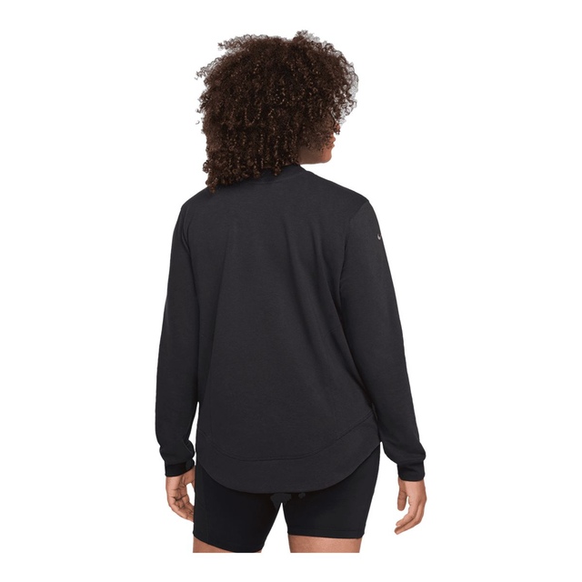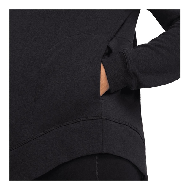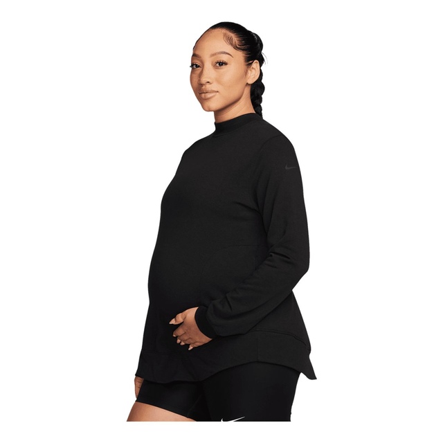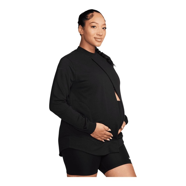 Experience ultimate comfort with the Nike Women's Maternity One Fleece Top. Designed with soft, breathable French terry fabric, this pullover features a reversible design with a full-length split for easy nursing access. Nike’s Dri-FIT technology wicks moisture away, while the curved hem and full-length silhouette provide ample coverage during and after pregnancy.