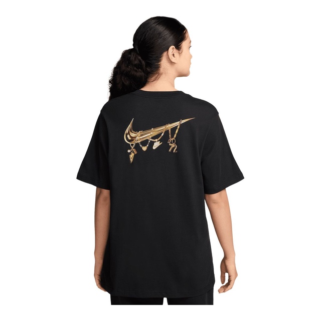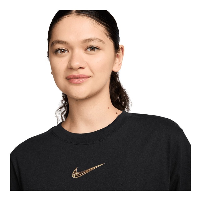 The Nike Women's MWK Shine T-Shirt effortlessly blends comfort and style with its soft midweight cotton fabric and subtle, shimmery design. The breathable cotton ensures all-day comfort, making it ideal for laid-back wear. This relaxed-fit tee features a slightly slouchy, loose silhouette for a stylish, modern look.