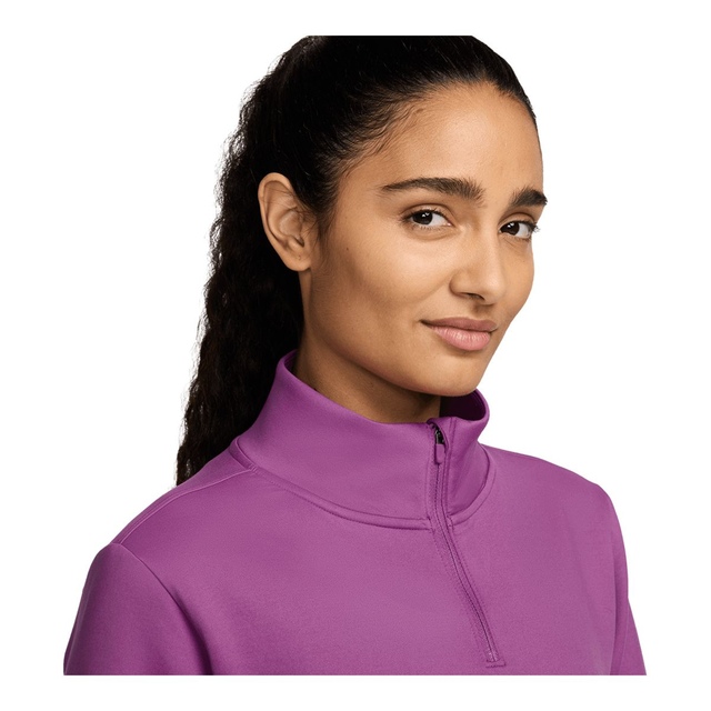 Designed for all the ways you move, Nike Women's One Therma-FIT Long Sleeve Top is made with soft fleece that helps keep you warm to, from, and during your workout. Its high-stretch fabric with sweat-wicking power flexes with every move while helping you stay dry. Featuring the ultimate Nike Therma-FIT technology that manages your body’s natural heat to help keep you warm in cold-weather conditions. Adding to it is a standing collar that zips at the neck to make it easy to adjust the airflow.