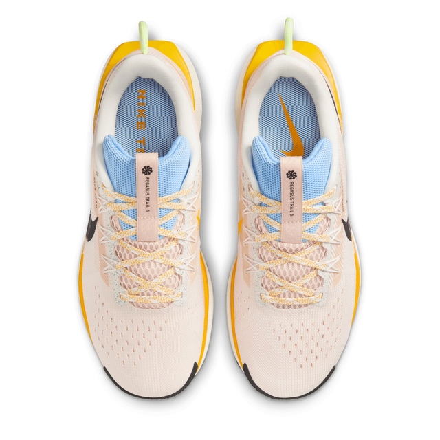 The Nike Women's React Pegasus Trail 5 Running Shoes offer a stable yet responsive ride on varied terrain. Equipped with an ultra-responsive ReactX foam midsole, these trail shoes provide a smooth transition from road to trail while preserving cushioning. Strategically-placed durable mesh and Flywire technology deliver breathability and a secure fit. The generative traction pattern and forefoot rubber provide grip for technical trails without compromising road feel. Built to push the limits across any path, the Peg Trail 5 is a versatile trail runner ready to accompany you on your next journey.