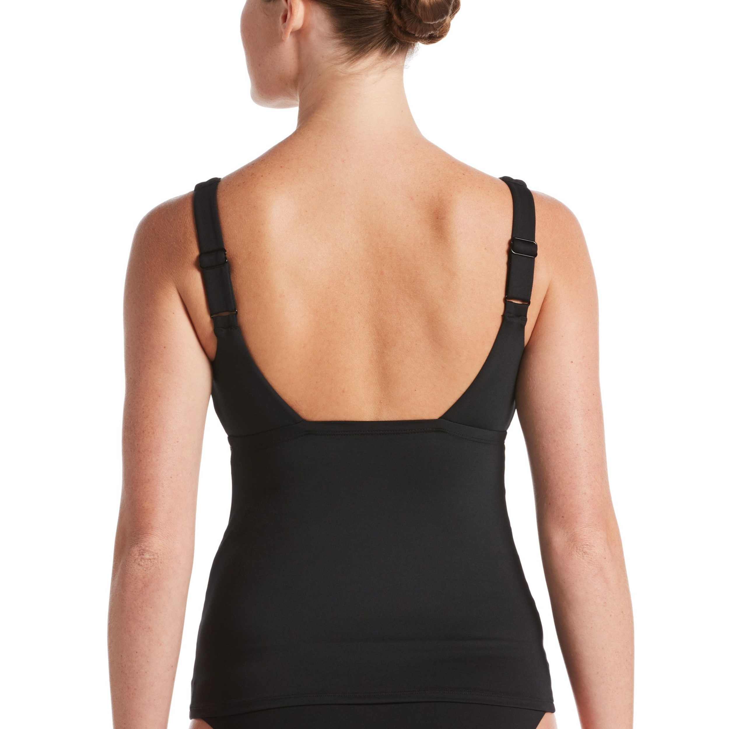 The Nike Women's Square Back Tankini is made with adjustable straps for a customizable, comfortable fit. The swim top is fully lined for comfort and security and has soft removable cups that sit securely in stabilizer pockets so they don't shift as you swim. Designed for performance and comfort, this Nike swimsuit is a great choice for a variety of water activities.