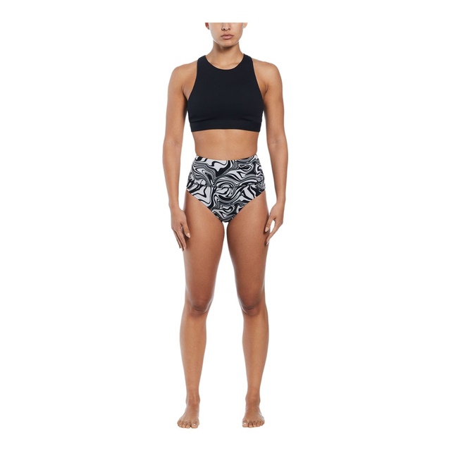 The Nike Women's Swirl High Waist Bottom strikes a perfect balance between coverage, comfort and style. The mid-leg height and high waist provide ample coverage during training while the stretch waistband offers a custom, secure fit. Strategically placed Nike Swooshes add iconic flair to the eco-conscious design crafted from at least 75% recycled materials. Moisture-wicking fabric keeps you cool and dry during intense workouts while the smooth lining prevents chafing. Balancing function, sustainability and signature Nike style, these bottoms equip you to train in total comfort.
