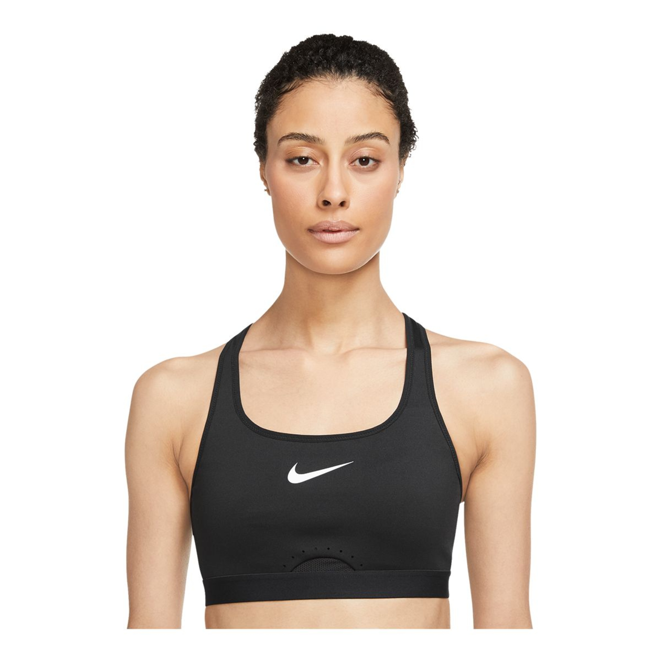 With wide, comfy straps in a classic racerback design, this Nike Swoosh Sports Bra brings you a new high support solution. Experience the snug and secure feel while you move through your higher impact workouts. Smooth, lightweight fabric wicks sweat to keep you dry, comfortable and focused. For every rep, step and jump—know that you’re supported. And, it's mindfully made with at least 50% recycled polyester fibers.