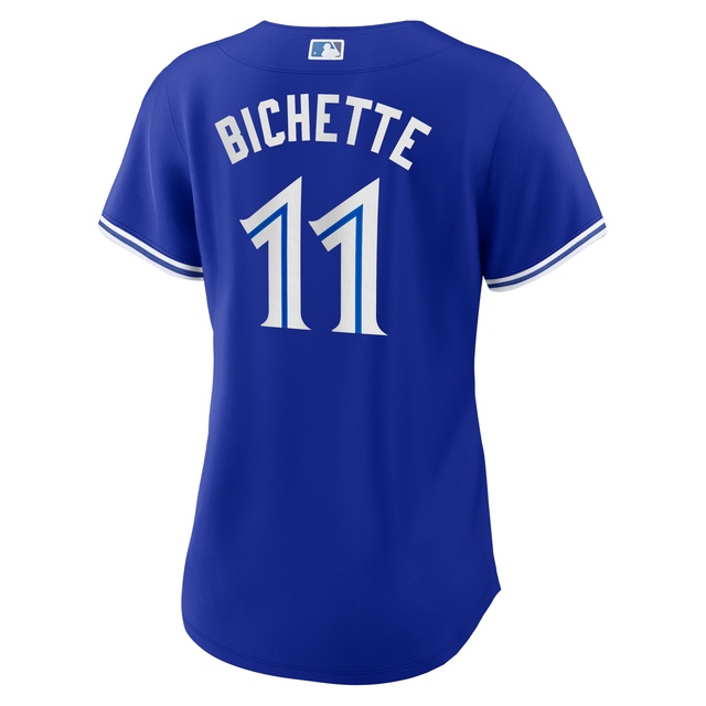 Get the authentic look and feel of the Toronto Blue Jays with the Nike Women's Toronto Blue Jays Bo Bichette Replica Lightweight Breathable Baseball Jersey. Made with Nike's Dri-FIT technology, this breathable jersey wicks away moisture to keep you cool and dry. The screen printed name and number graphics give this replica jersey an official look, while the ribbed knit collar and armbands provide a classic baseball jersey style.