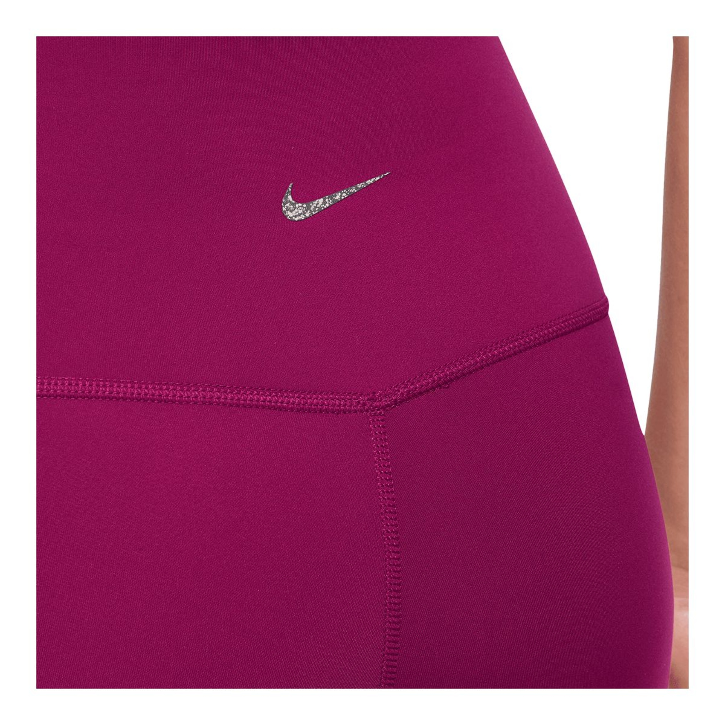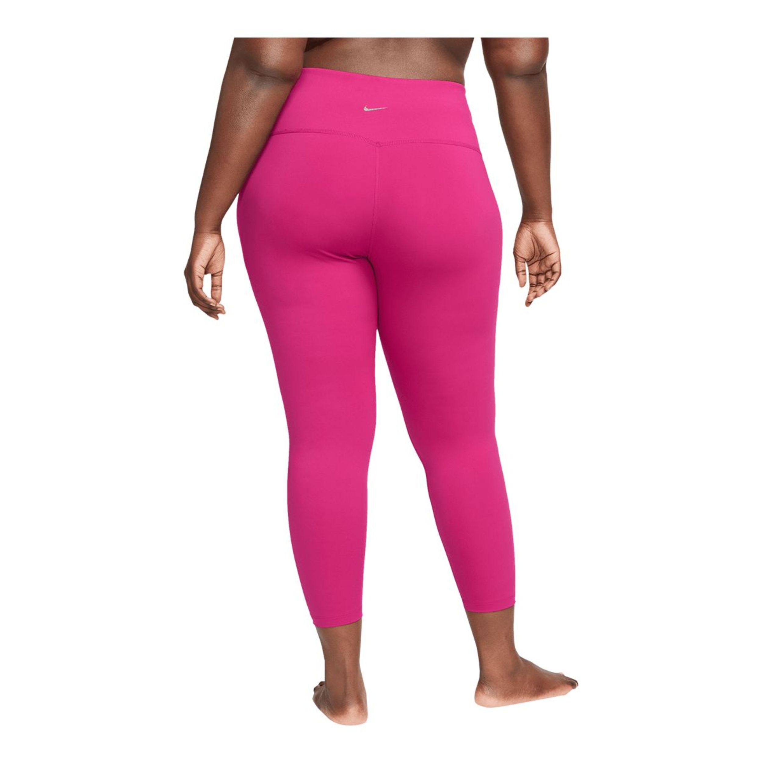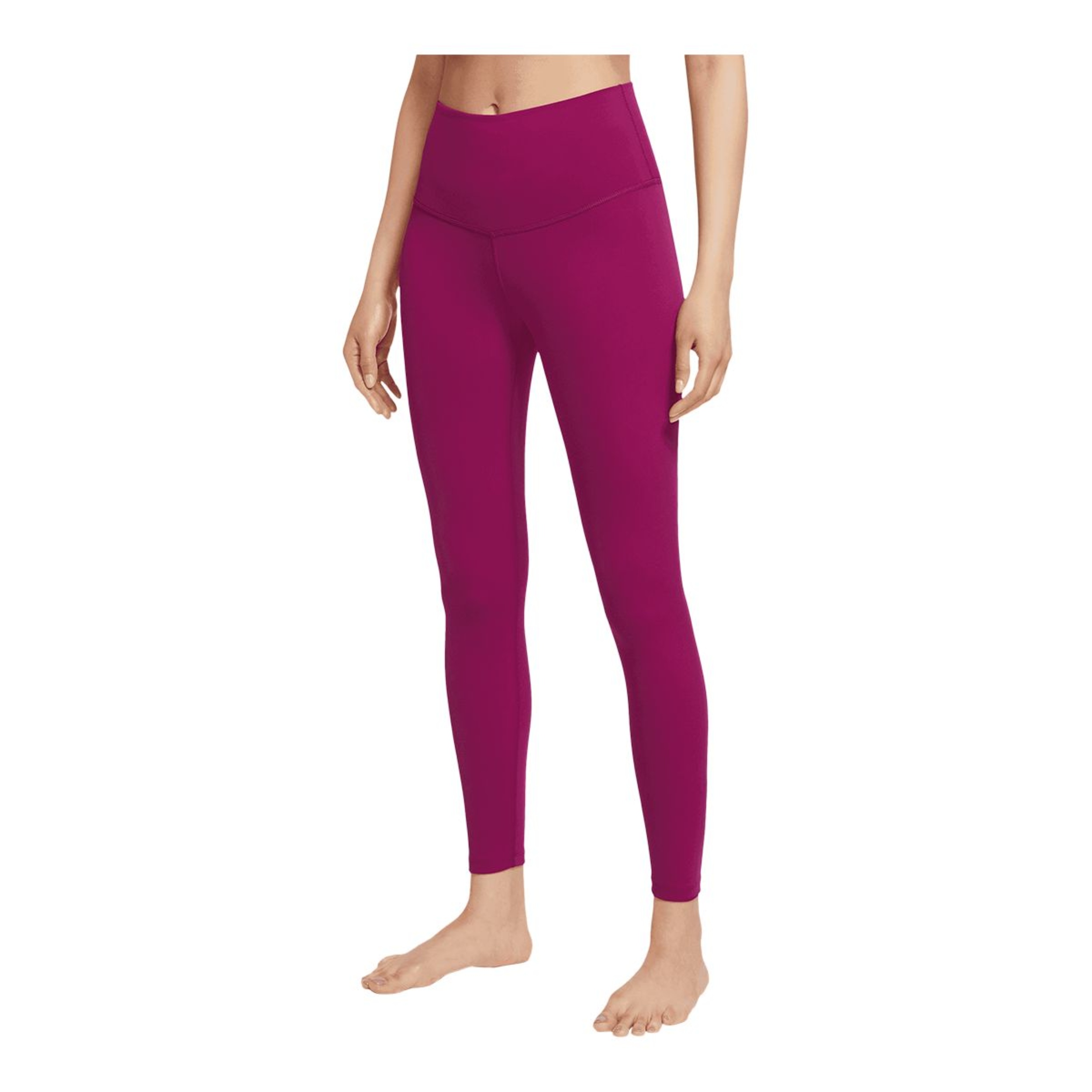 These Nike Women's Yoga 7/8 Tights feature a high-rise waist for confident coverage and a flattering "V" back. Built-in Nike Dri-FIT technology helps to keep you dry, and an interior pocket offers smart storage. Enjoy a snug, body-hugging fit in these Nike tights, which are ideally constructed to support your yoga practice.