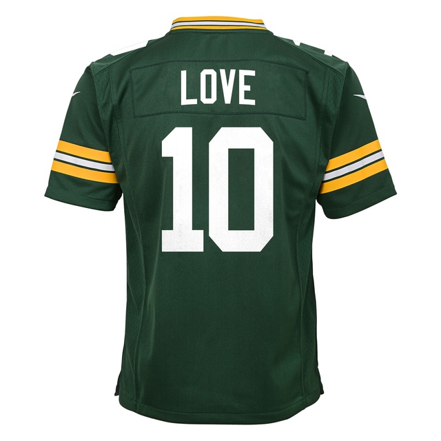 Show your support for your favourite team with the Youth Green Bay Packers Nike Love Game Jersey. This jersey features the team's colours and authentic player details, making it perfect for dedicated young fans. Designed for comfort and style, it's an ideal choice for game day or everyday wear.