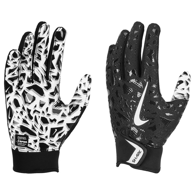 Gear up for game day with the Nike Youth Shark 2.0 Football Gloves. Made from lightweight stretch material, these gloves provide unrestricted motion for young athletes. The sticky Magnigrip palm ensures maximum catching power, while the adjustable cuff offers a snug, custom fit. Elevate every play and make those catches count.
