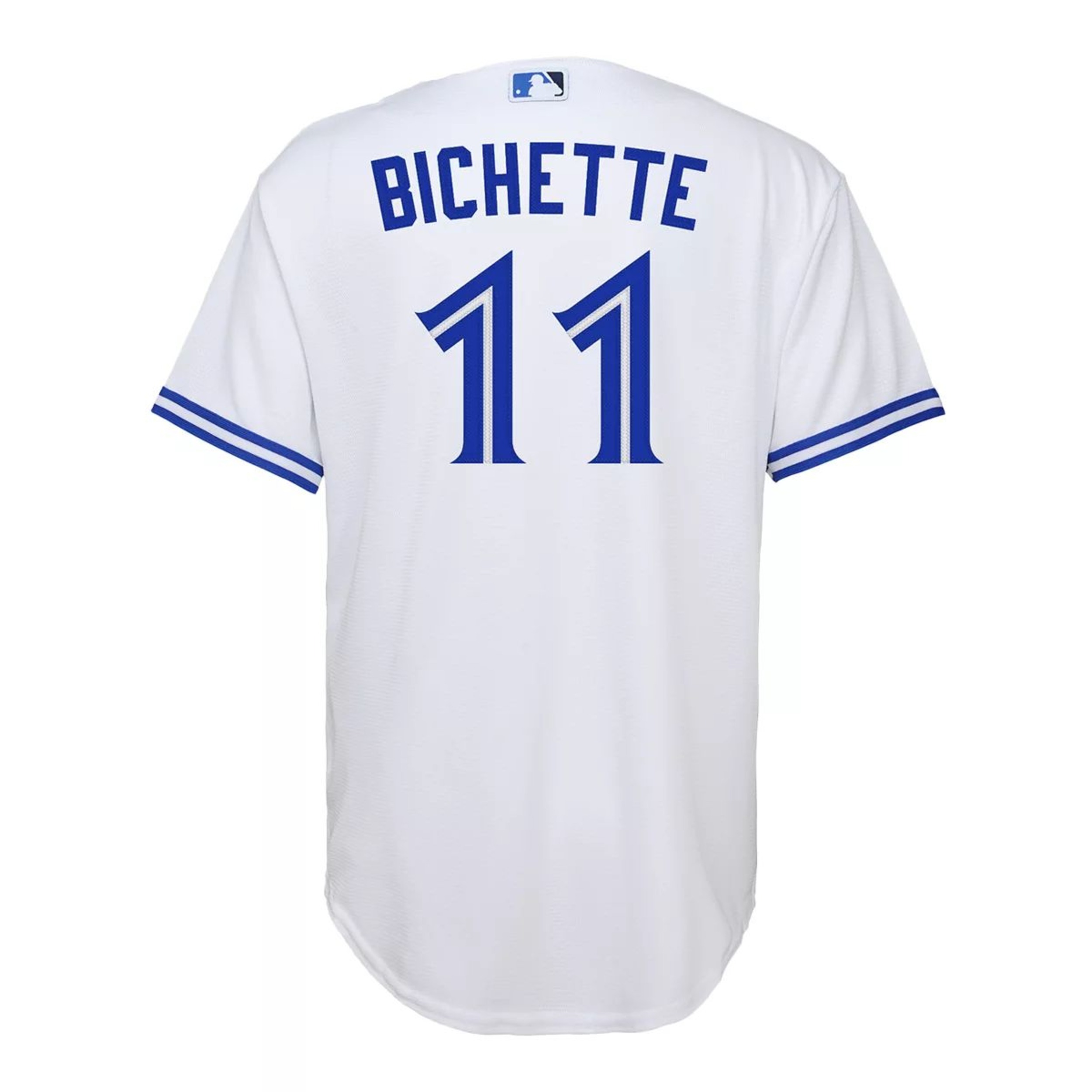 Bring the energy of the ballpark home with this Nike Youth Toronto Blue Jays Bo Bichette Replica Alternate Baseball Jersey. Featuring the authentic look of the on-field jersey worn by Blue Jays superstar Bo Bichette, this breathable jersey is made with Nike's signature Dri-FIT technology to wick moisture away from the body. With Twill applique graphics, this replica jersey enhances breathability and the realistic details for young fans.