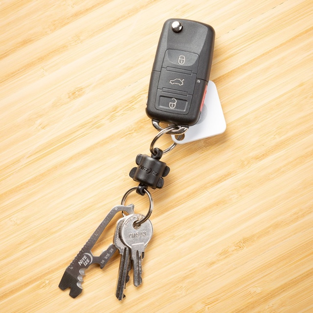 The Nite Ize Keyring 360 Magnetic Connector combines two sets of keys easily. With dual stainless steel split rings connected by neodymium magnets in plastic housing, this keyring offers a secure and convenient solution. Its unique interlocking design ensures your keys stay connected, preventing separation, while the tabs on each side allow for easy division. Lightweight and user-friendly, this magnetic key holder is ideal for separating work and personal keys, sharing with a spouse, or managing multiple sets.