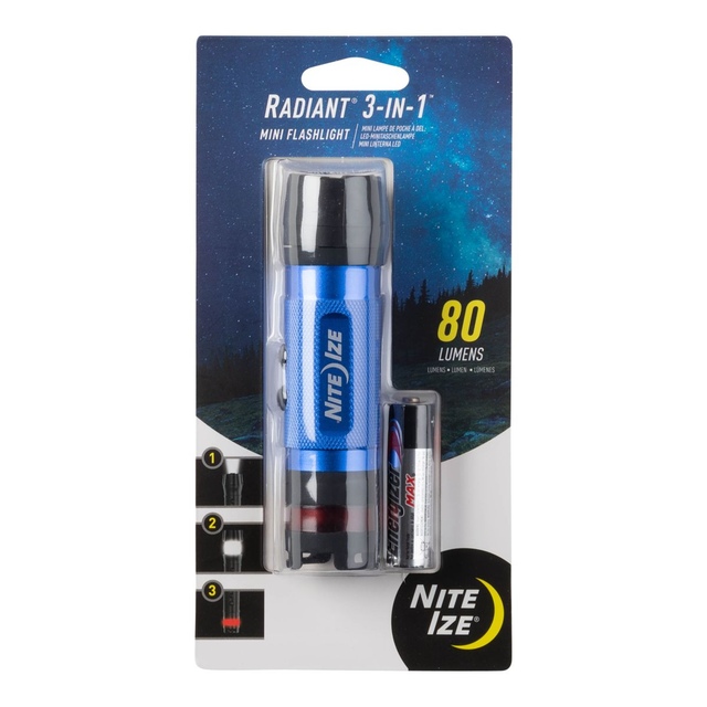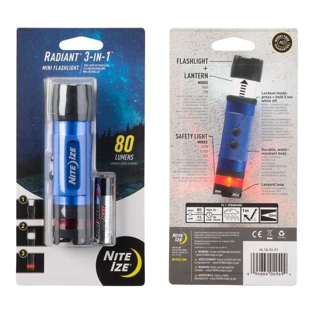 The Nite Ize Radiant 3-in-1 Mini Flashlight is a versatile LED tool that functions as a flashlight, area lantern, and safety beacon. It features seven light modes for different brightness levels and extended runtime. The glow, flashing, and SOS modes improve visibility. This 80-lumen flashlight illuminates up to 164 feet ahead and provides ambient area lighting. This Nite Ize flashlight also has a lockout feature to prevent accidental activation and preserve the battery life.