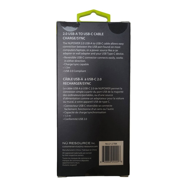 This NuPower 1.5M Charge/Sync USB Type C Cable connects your device with a Type C connection to your computer's USB port for syncing and charging. May be used with a USB Power Adapter (optional) for convenient charging from a wall outlet.