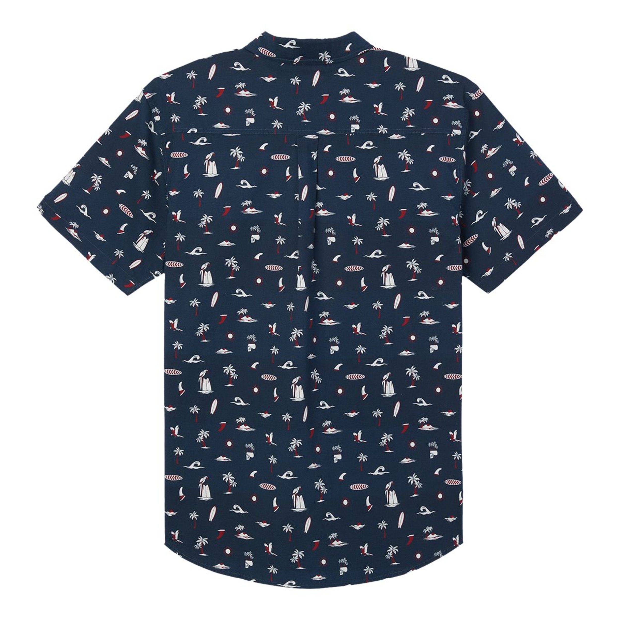 The O'Neill Kids' Quiver Stretch Allover Print Shirt combines comfort and style with its stretch cotton fabrication and printed allover pattern. The button-front design offers a classic look, while the chest pocket provides convenient storage for essentials. Made from a durable 98% cotton and 2% elastane blend, this O'Neill shirt allows unrestricted movement for active days.
