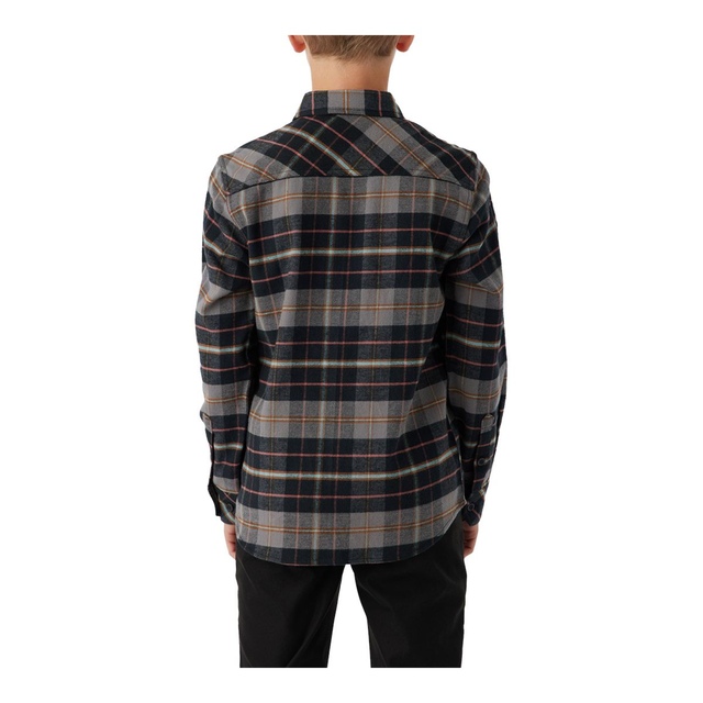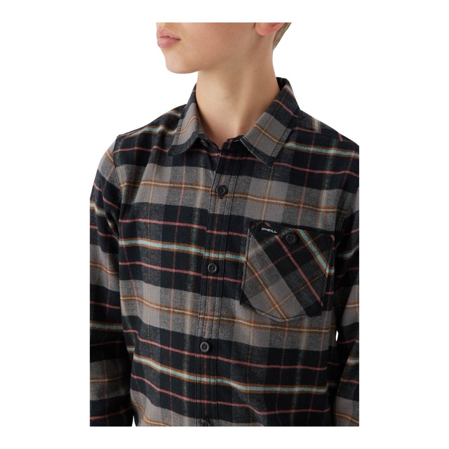 O'Neill Kids' RMD Plaid Stretch Flannel Long Sleeve Shirt brings timeless style and modern comfort together. The yarn-dyed plaid print and soft brushed cotton blend provide a cozy feel, while the stretch fabrication allows easy movement. The standard fit and single chest pocket create a casual yet put-together look perfect for school, running errands or hanging out with friends. This versatile long sleeve shirt is an essential addition to any wardrobe.
