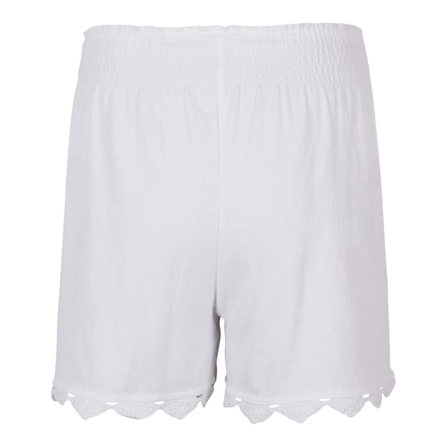 Online Only: Pull on jersey shorts with a wide, smocked waistband sitting high on the waist and pretty lace detailing at the cuff. The Smocked Shorts are easy to style and give a feminine touch to your look.