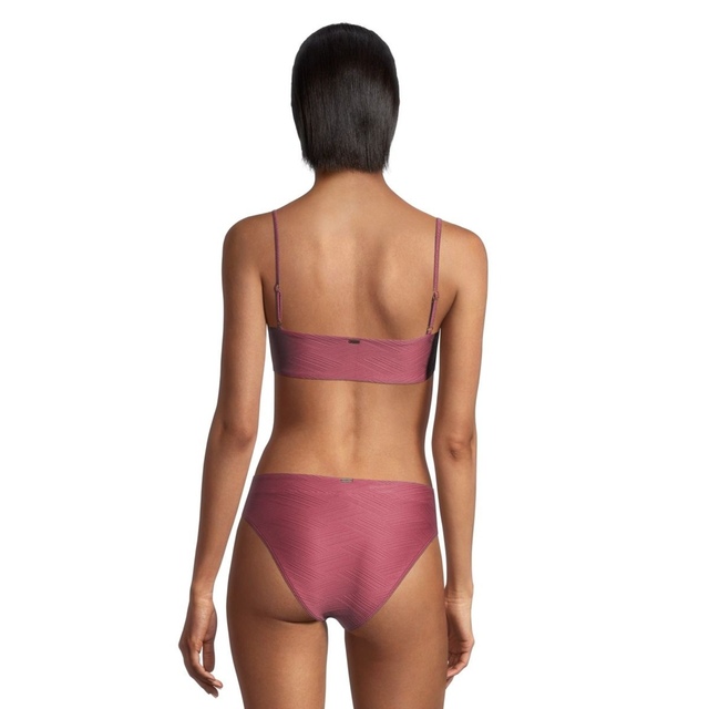 Just add water. This is a textured style bikini top that has a square neckline design and adjustable over the shoulder straps.