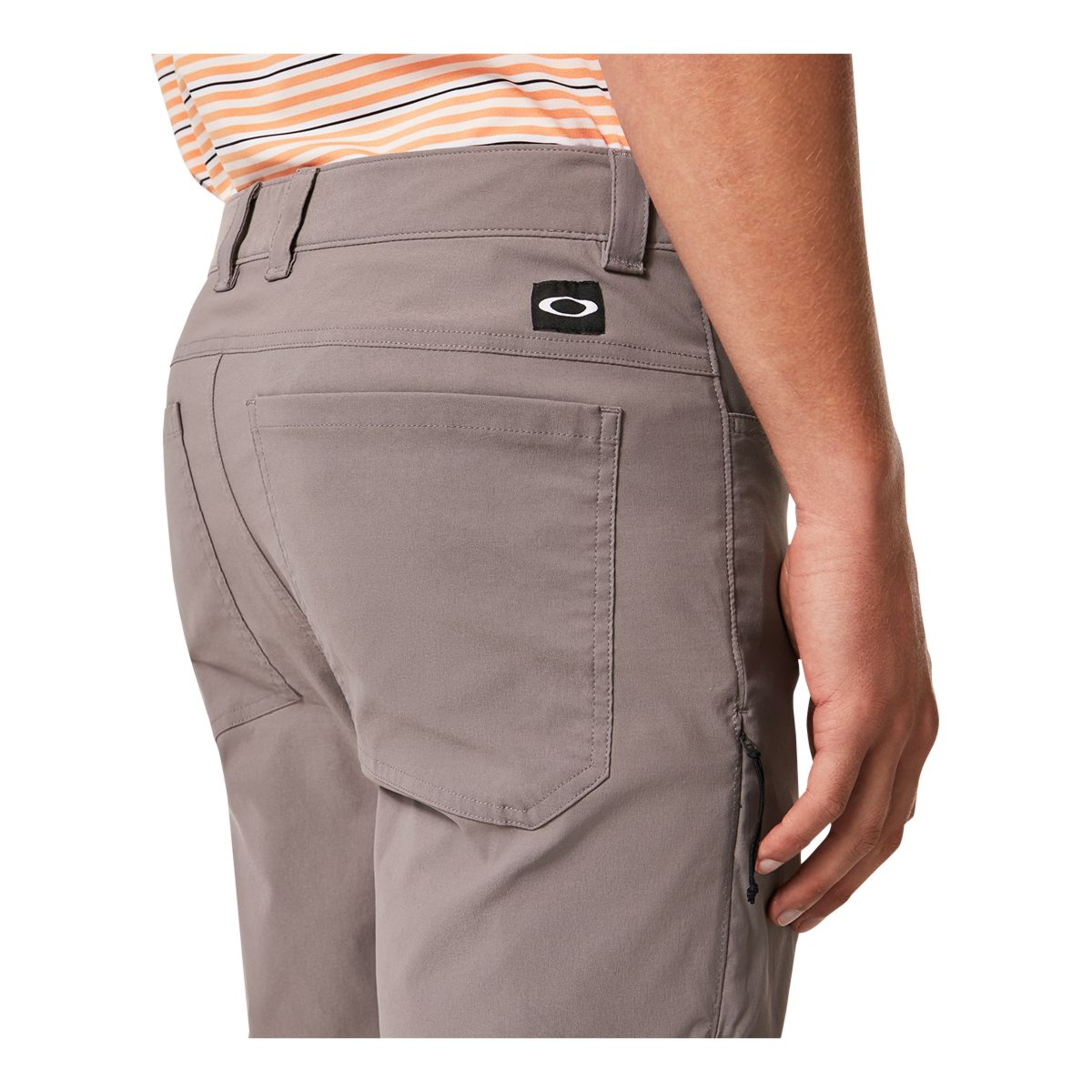 The lightweight, water repellent Oakley Terraint Perf Pant are perfect for a day on the greens where the weather is warm but unpredictible. Constructed from stretch fabric, these pants have two side pockets, and welt and zippered back pockets to hold essentials. A branded pen loop gives you quick access and it's finished with an Oakley logo on the back right leg and tag on the left pocket side seam.