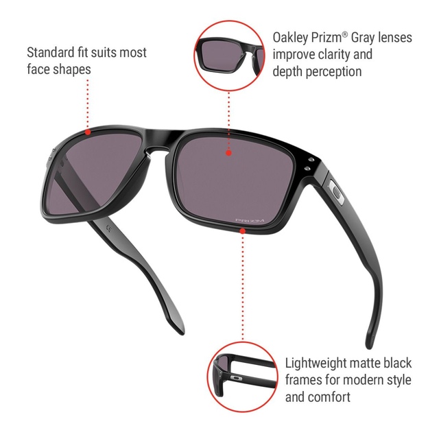 Embrace the fusion of style and performance in Oakley Unisex Holbrook Wayfarer Sunglasses. Featuring a matte black frame and Prizm Grey lenses for stylish flair, these standard-fit sunglasses offer comfort and enhanced visual clarity for both men and women. Oakley Holbrook sunglasses are a versatile, lightweight choice for both outdoor activities and everyday wear.